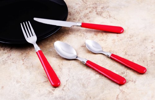 Unica Flatware Collection "Lillian" 36-Piece Cherry-Red Handle, Vibro Finish Flatware Set Review